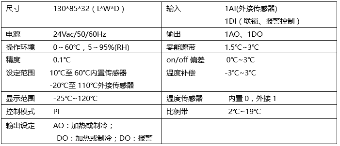 • 零能量带,on/off偏差,比例带,温度补偿可调