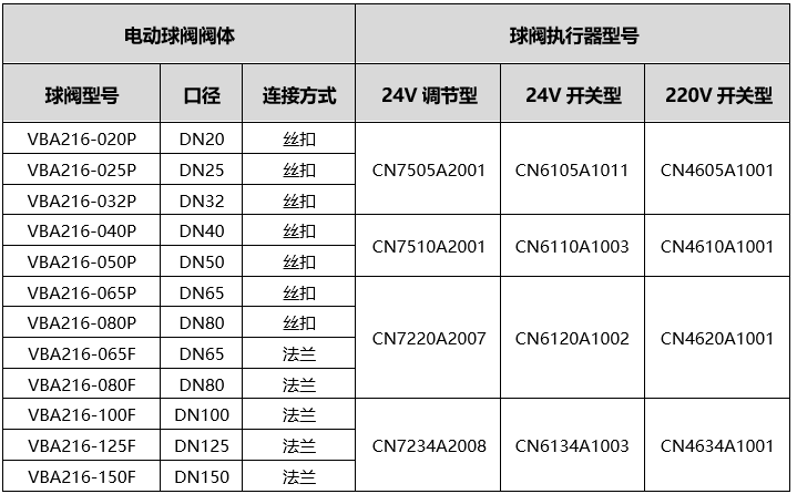 Honeywell霍尼韦尔 二通控制球阀VBA216系列