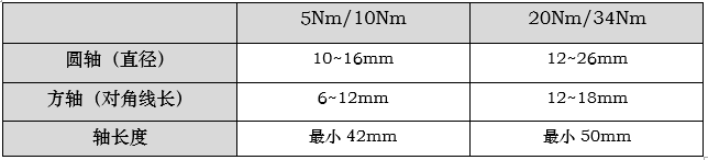 • 具有5Nm、10Nm、20Nm和34Nm四种扭矩类别